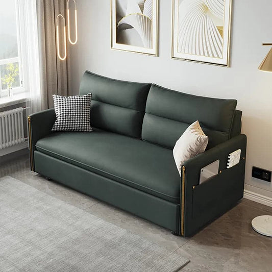 64" Green Convertible Sleeper Sofa Bed with Storage Leath-aire Upholstery