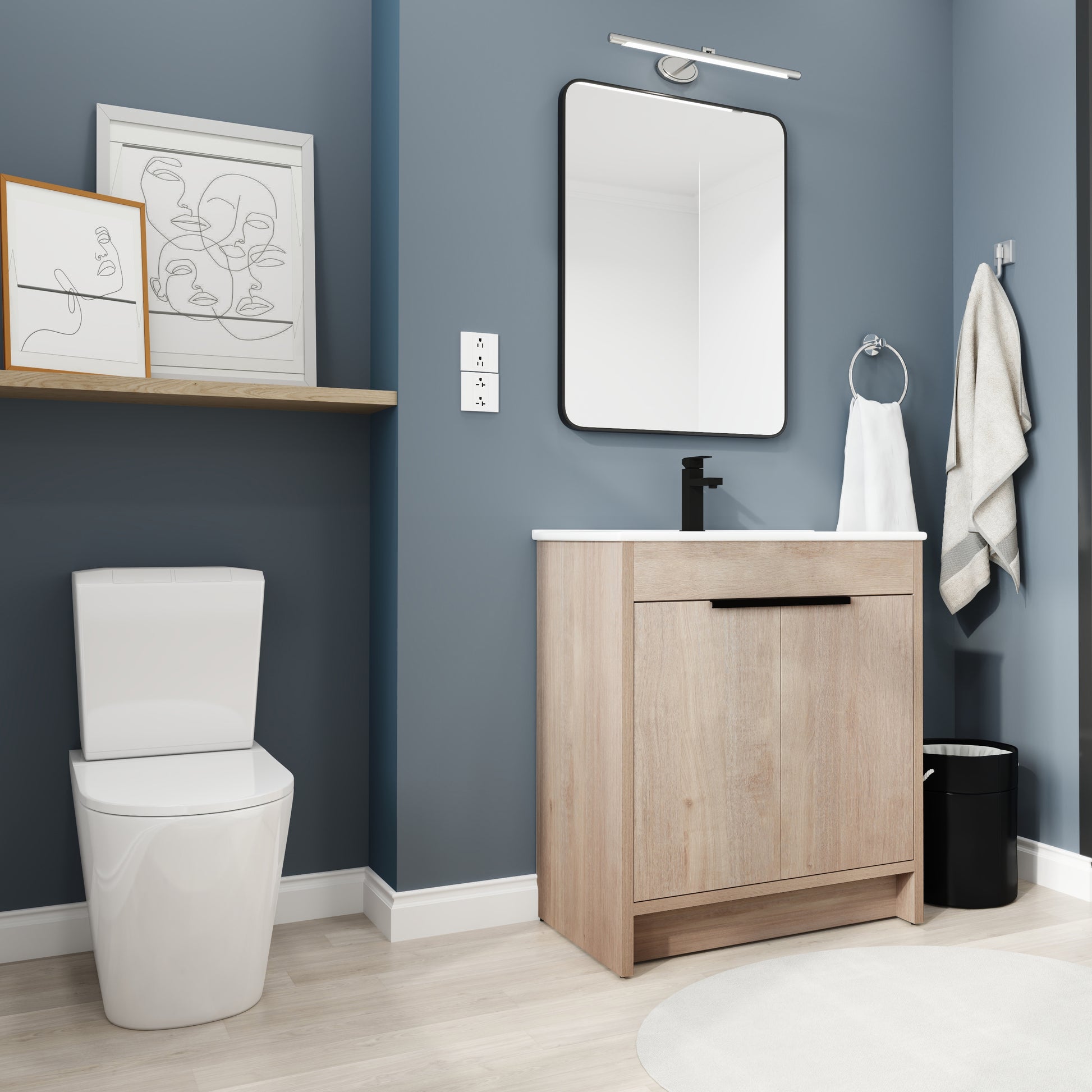 30 Inch Freestanding Bathroom Vanity with White Ceramic Sink & 2 Soft-Close Cabinet Doors (BVB02430PLO-BL9075B)=W999S00063