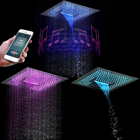 20" Ceiling Mounted Thermostatic Rainfall Shower System 4 Functions LED Light in Black