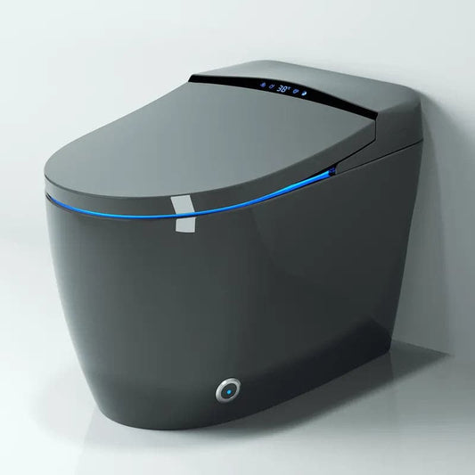 One-Piece Elongated Gray/Black Smart Toilet Floor Mounted Automatic Toilet Self-Clean