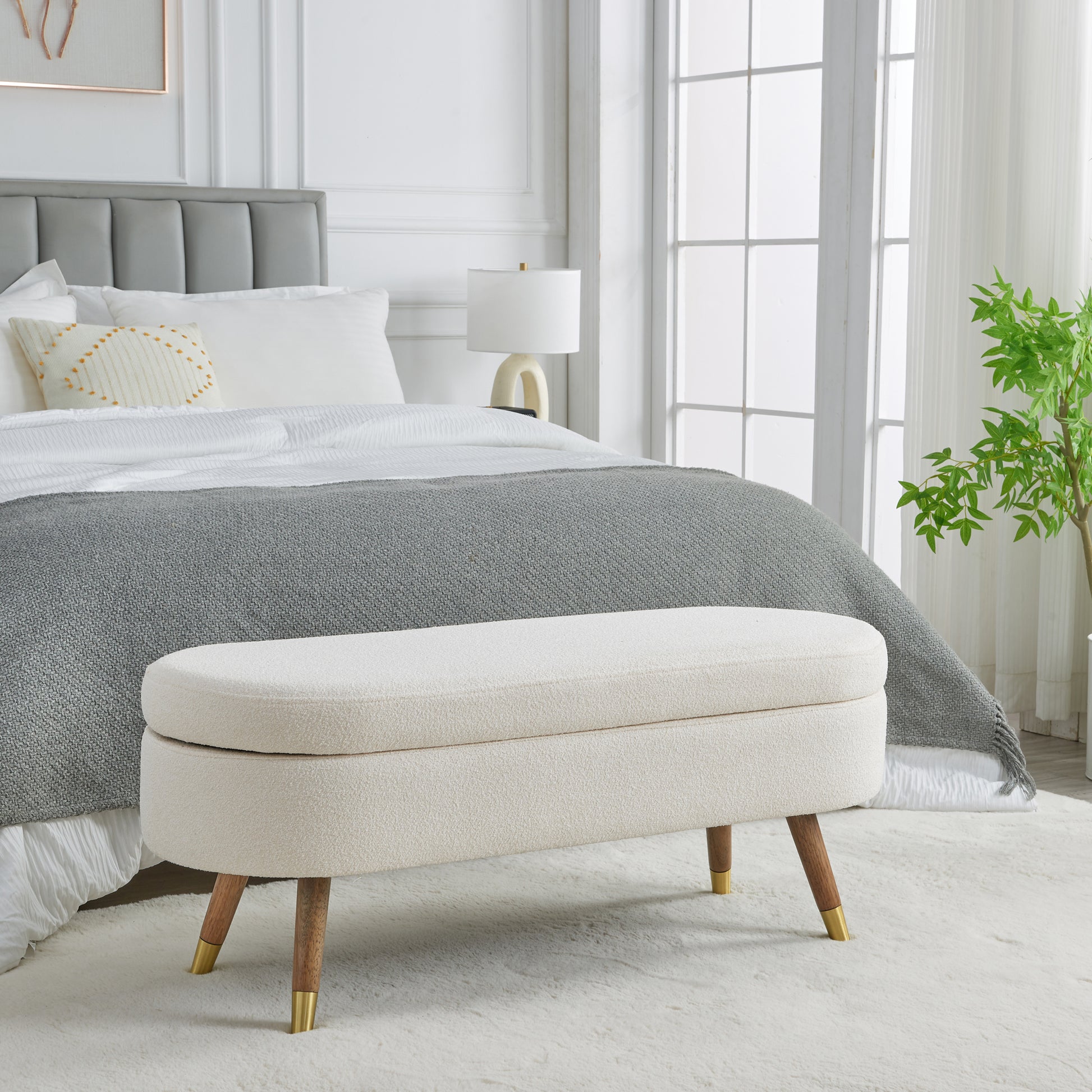 a seat covered in soft, fluffy fabric, and premium foam, ensure that this bench will not only add a touch of elegance to your home's design but also provide a comfortable place to sit.