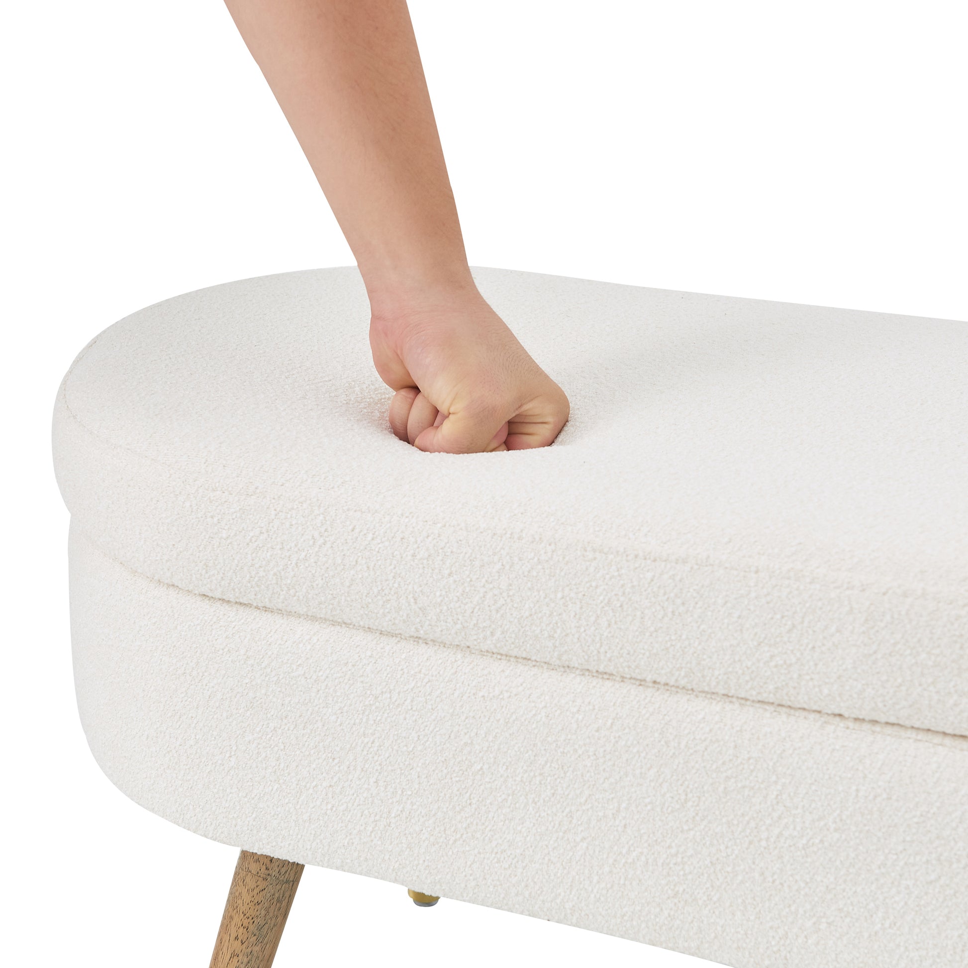 Storage bench Upholstered Boucle Ottoman with Golden Metal Legs End of Bed bench for Bedroom, Living Room, Entryway,Bed Side(Ivory)