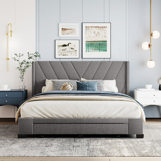 Queen Size Storage Bed Linen Upholstered Platform Bed with 3 Drawers (Gray)