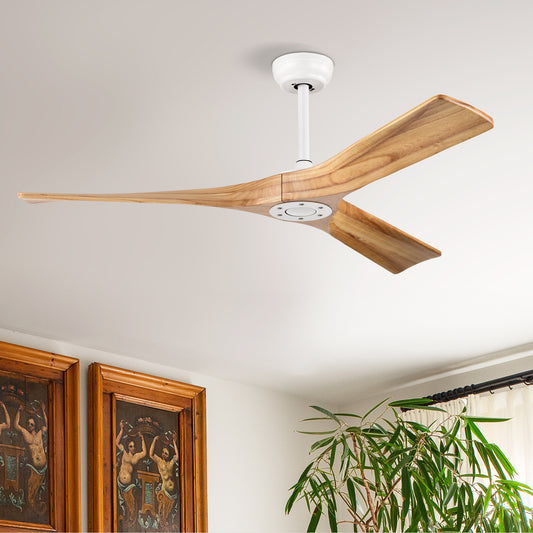 52" Modern Ceiling Fan with Remote - Chrome Finish, Wood Blades, LED Light for Living Room
