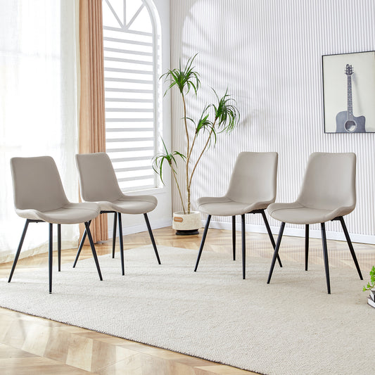 Light Gray Artificial Leather Dining Chairs with Black Metal Legs and Curved Cushions for Enhanced Comfort - Set of 4