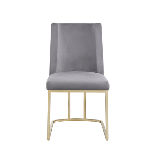 Velvet Upholstered Dining Chairs with Gold Metal Legs - Gray Side Chairs (Set of 2)