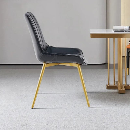 Modern Gray Upholstered Dining Chairs (Set of 2) with Hollow Back & Gold Leg