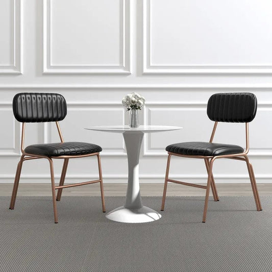 Modern Black & Green Dining Chair (Set of 2) with Faux Leather Upholstered & Metal Frame