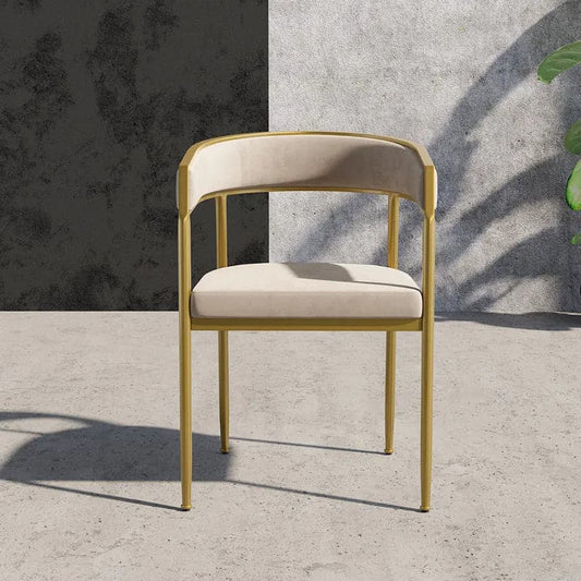 Modern Velvet Upholstered Dining Chair with Gold Metal Leg in Beige/Gray