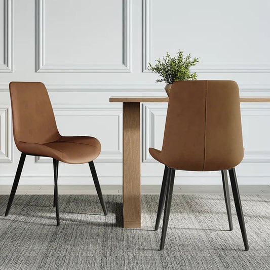 Modern Mid-Century Beige & Brown Faux Leather Upholstered Dining Chair (Set of 2)