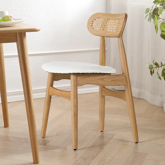 Japandi Natural Rattan Upholstered Dining Chair Ash Wood Side Chair Faux Leather