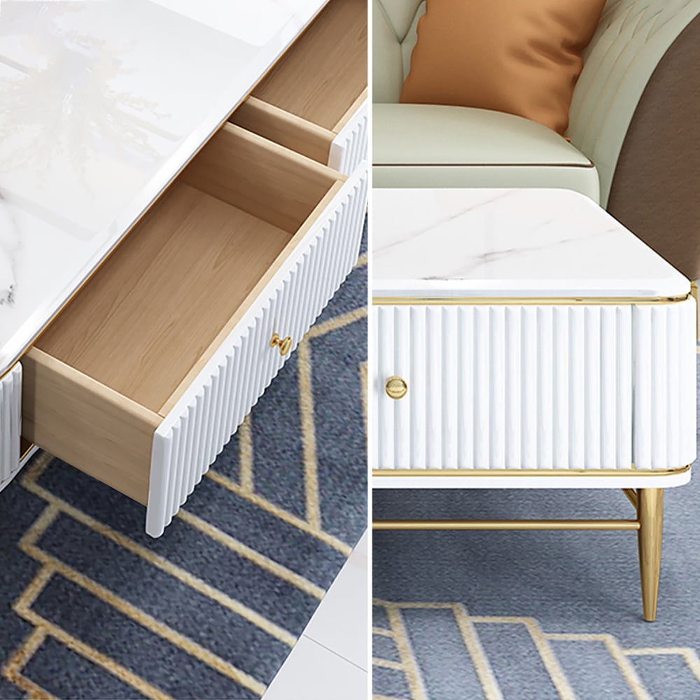 51" White Faux Marble Rectangle Coffee Table in Gold with Storage 4 Drawers