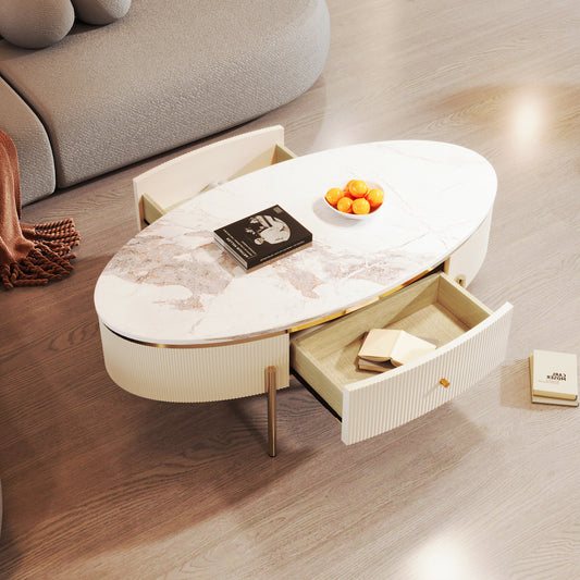 Modern Oval Coffee Table with 2 large Drawers Storage Accent Table