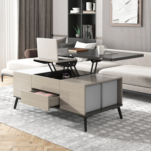 Modern Gray Multi-functional Rectangle Lift-top Coffee Table Extendable with Storage