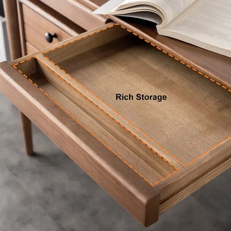 55.1" Mid-century Modern Walnut Ash Wood Writing Desk Home Office Desk with 5 Drawers