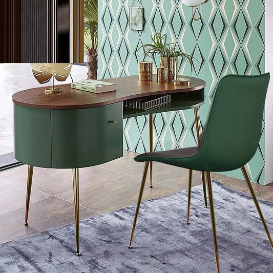 Mid-Century Modern Curved Office Desk Computer Desk with Shelf & Storage