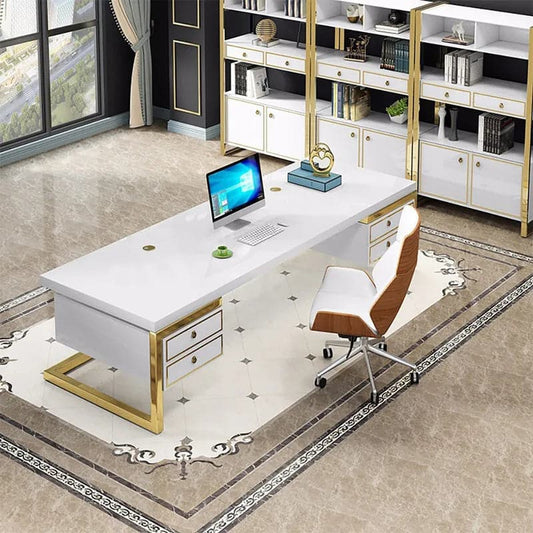 Modern Rectangular Executive Office Desk with 4 Drawers in White