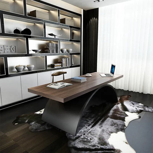 Industrial Rectangular Writing Desk Solid Wood Metal Base Office Desk