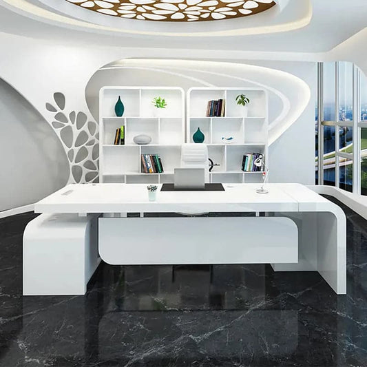 L-shaped Modern Executive Desk with Ample Storage Left Hand&Right Hand in White