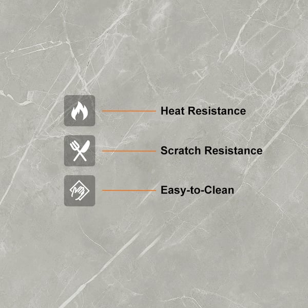 51" Round Gray Dining Table with Stone Top & Carbon Steel Base