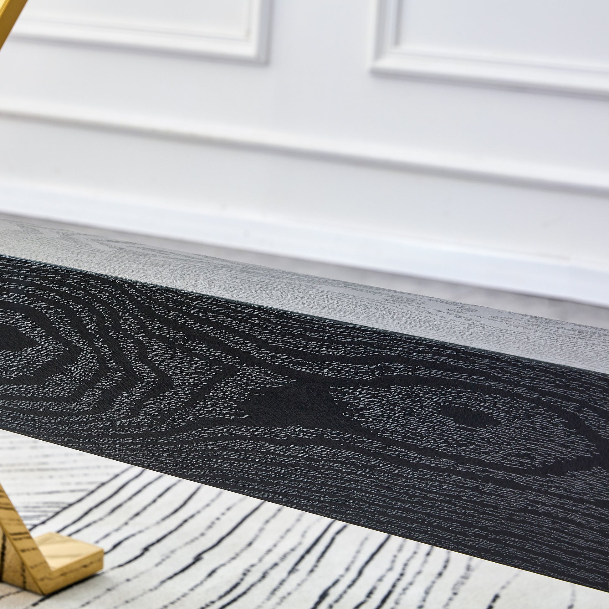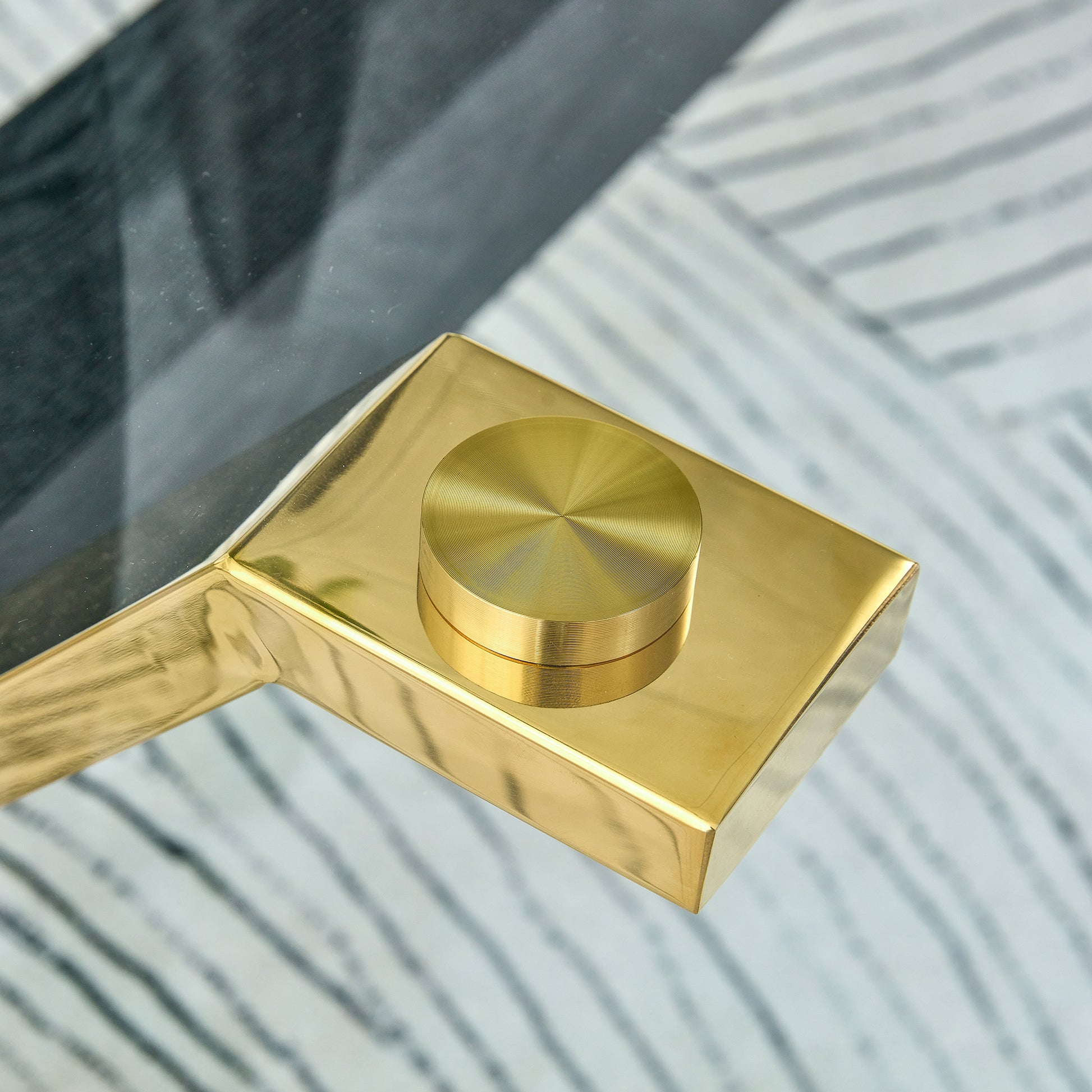 Dining table. Modern tempered glass dining table. Large modern office desk with gold metal legs and MDF crossbars, suitable for home and office use. Kitchen .71 ''x35.4''x30 '' 1105