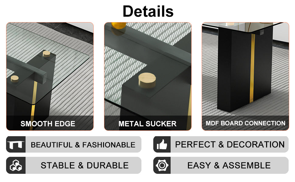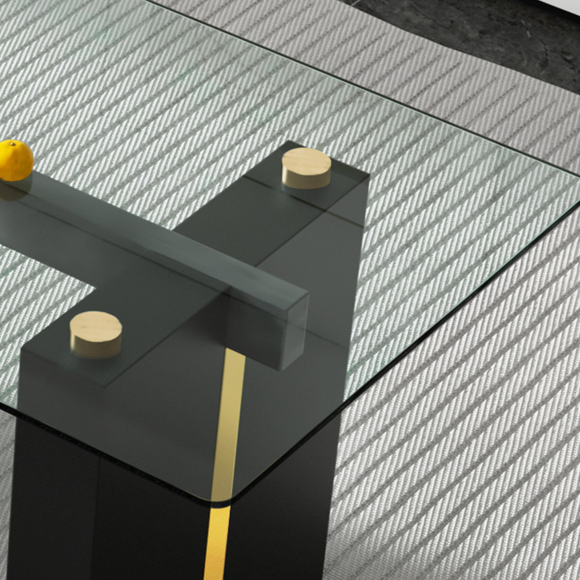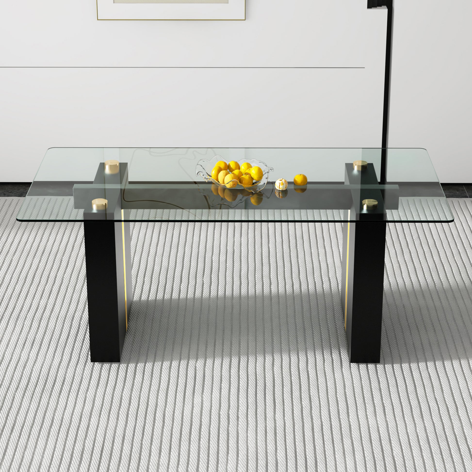 Large Modern Rectangular Glass Dining Table with Sturdy MDF Legs - Accommodates 6-8 People with 0.39-Inch Tempered Glass Top