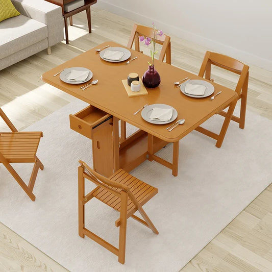 57" Modern Solid Wood Folding 5 Piece Dining Table Set Drop Leaf with 4 Chairs