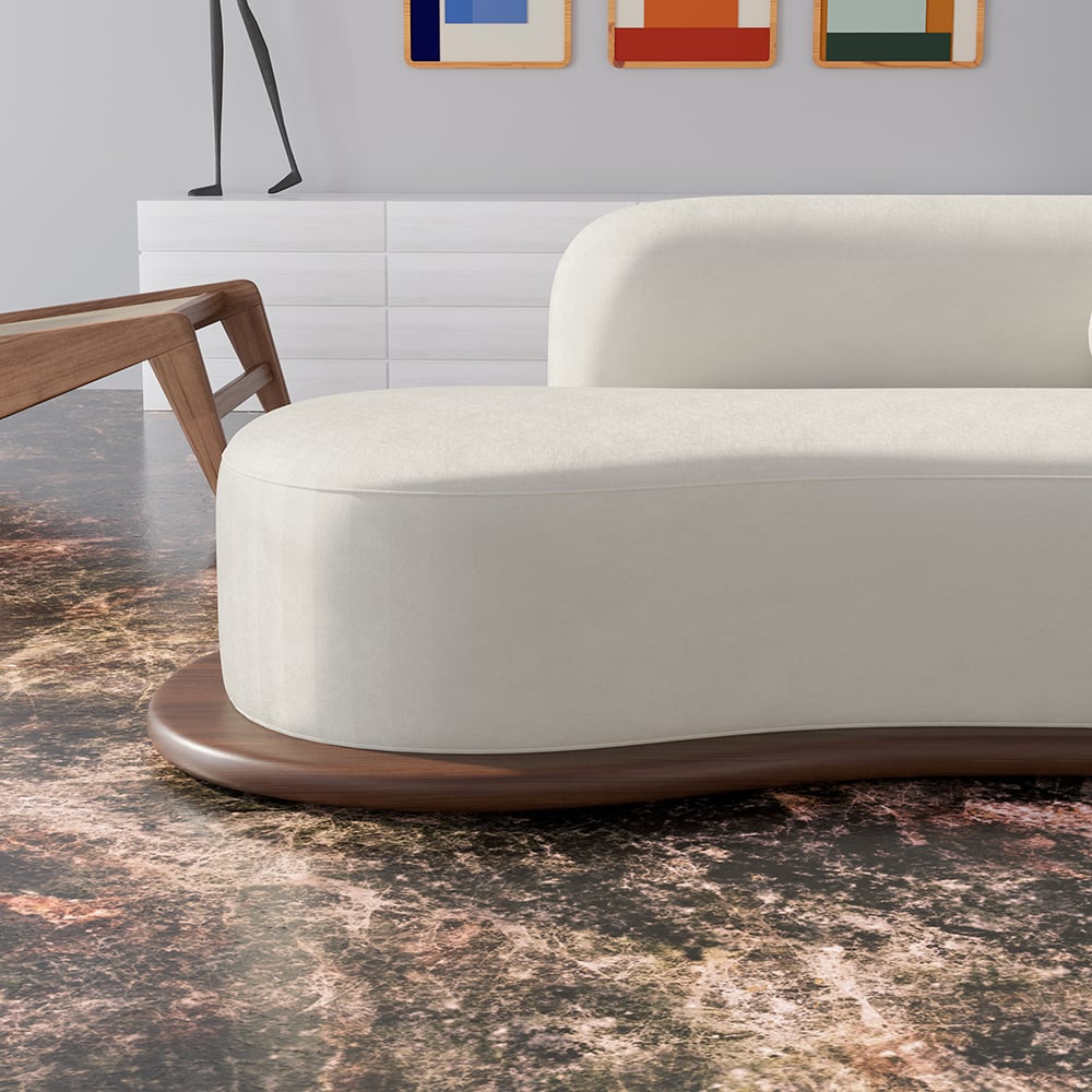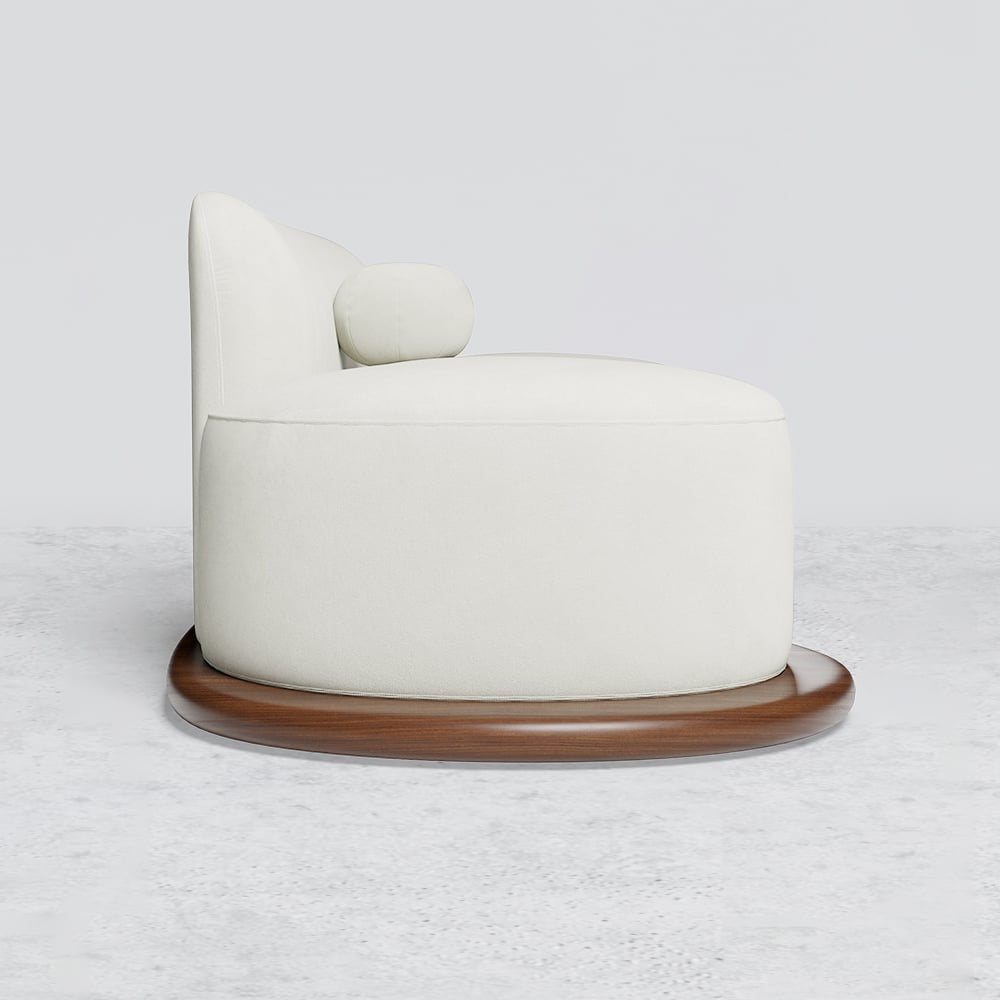 The curved sofa is a stylish and comfortable seating sofa to entertain friends or hang out with the family. Upholstered in a choice of velvet, it features a curved shape with a supportive backrest. The base of the sofa comes in a wooden base which contrasts against the fabric of the piece. Use the sofa in your main living room or lounge space which can accommodate several people at once and is ideal for a larger space. It would make for an excellent addition to any modern interior.