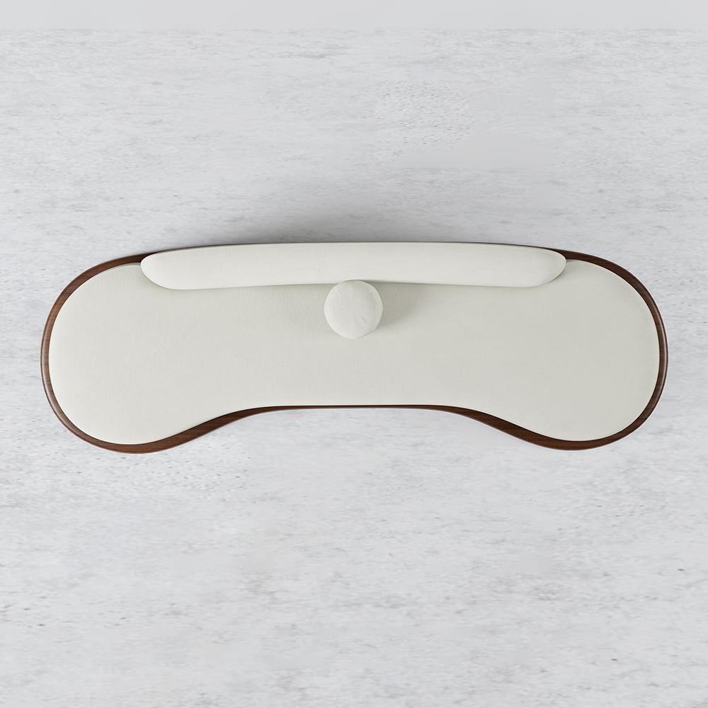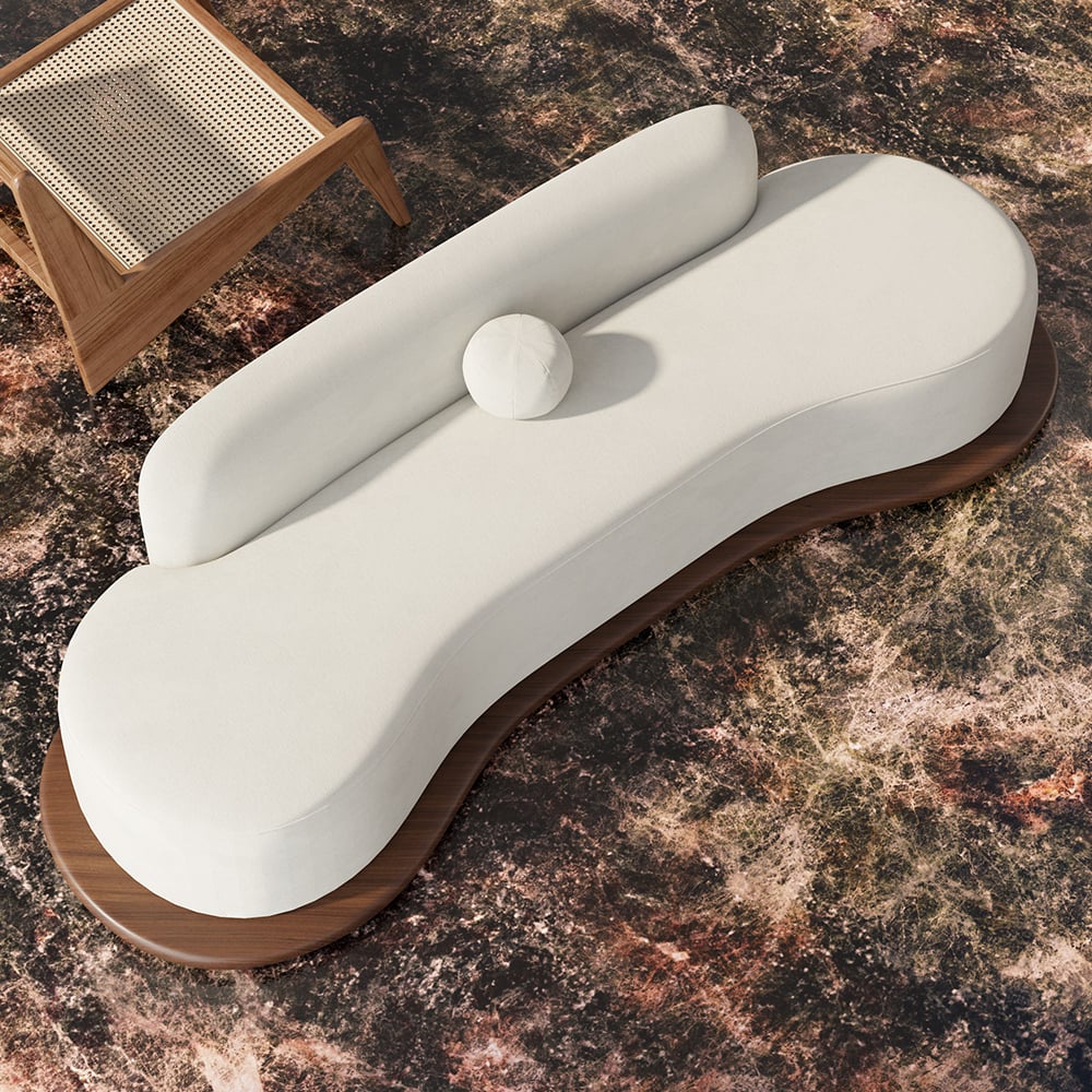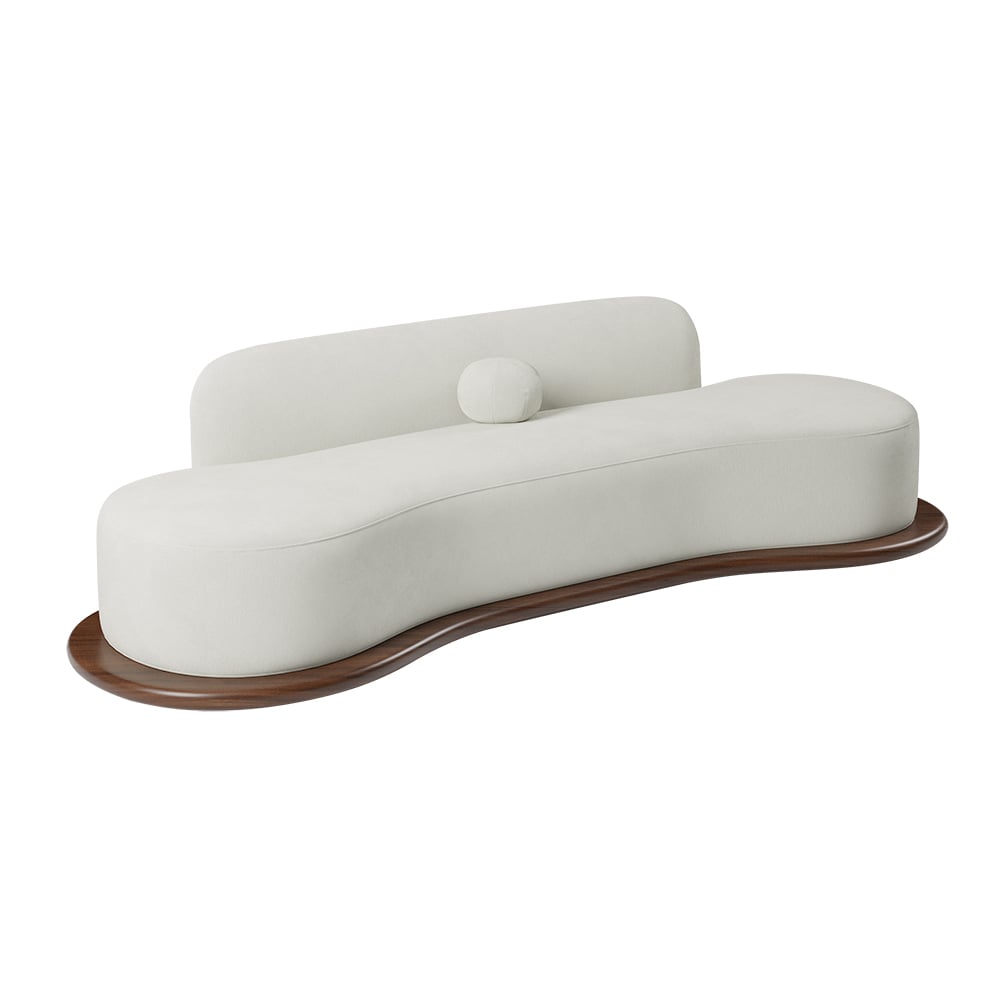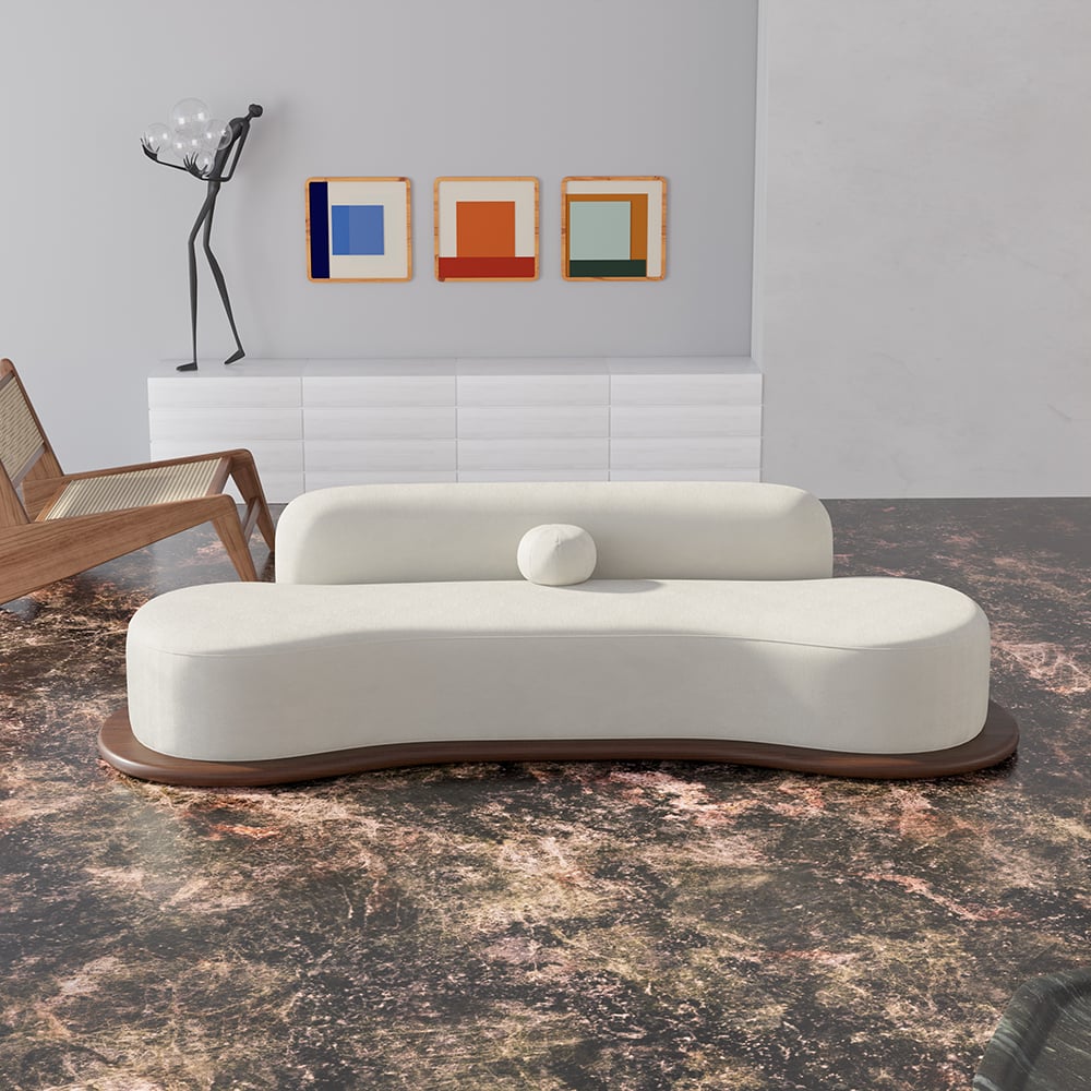 110" Modern White Velvet 5 Seaters Curved Sofa with Low Back Wooden Base