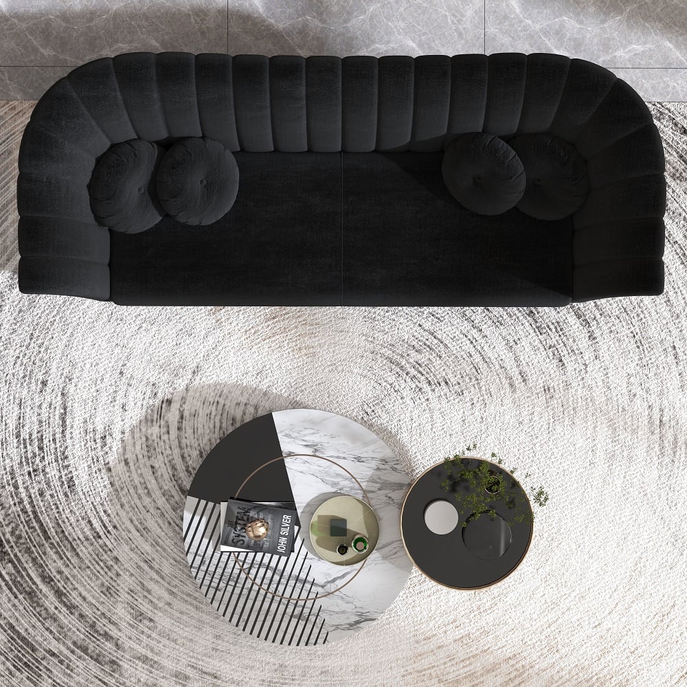 86.6" Black Velvet Upholstered Sofa Channel Tufted 3-Seater Sofa in Gold