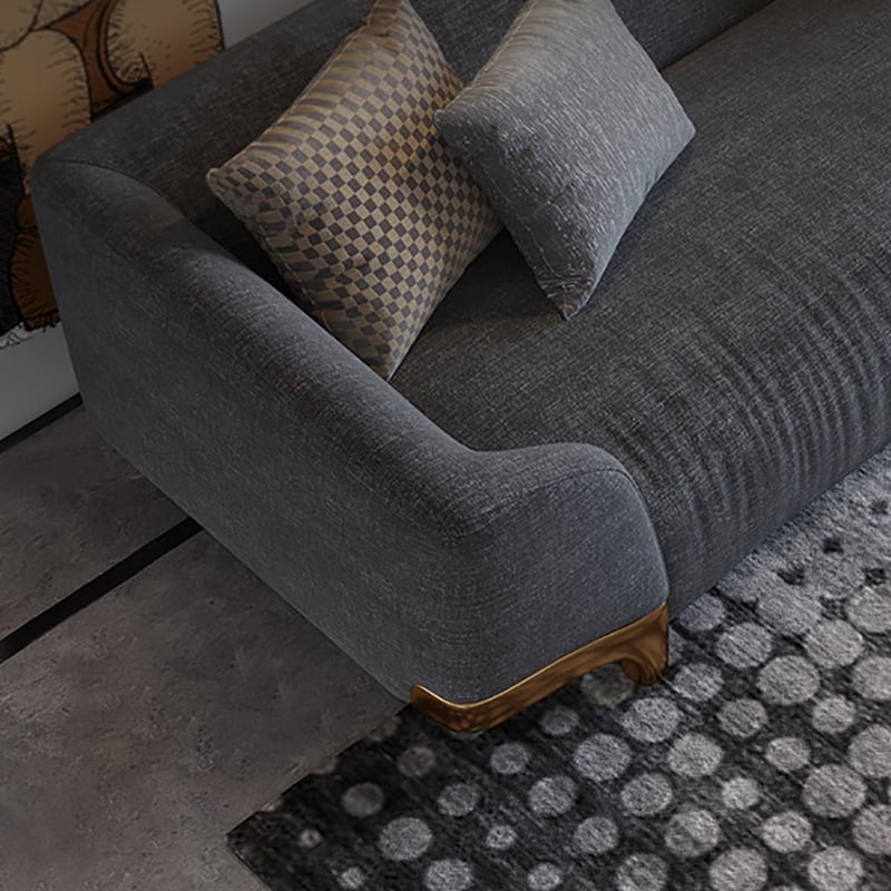 87" Gray 3-Seat Cotton & Linen Upholstered Sofa with Pillows Gold Legs