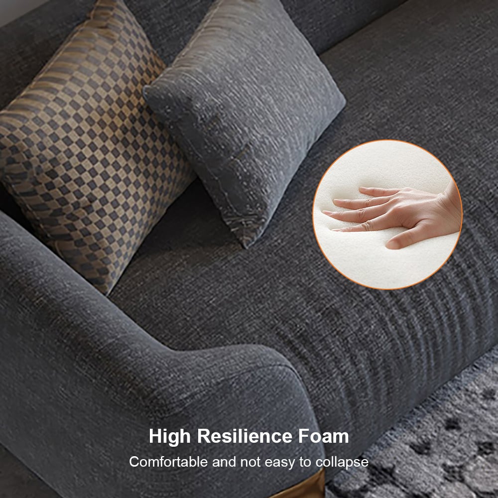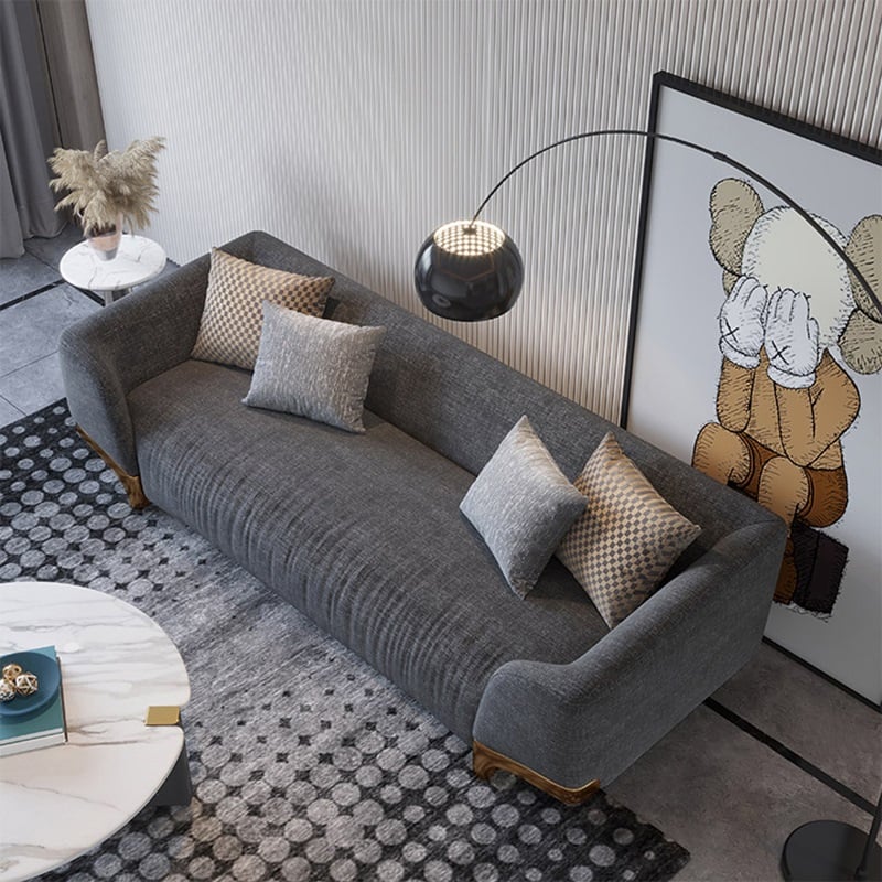 Bring exquisite and mannerly style to your living space with this 3-seater sofa. Upholstered in soft cotton & linen and filled with elastic foam, this sofa offers maximum comfort. And the gray tone goes well with the gold legs, it brings a modern yet elegant charm to your room. Come with a solid wood frame, it ensures sturdy construction for years to come. An ideal addition to updating your living room.