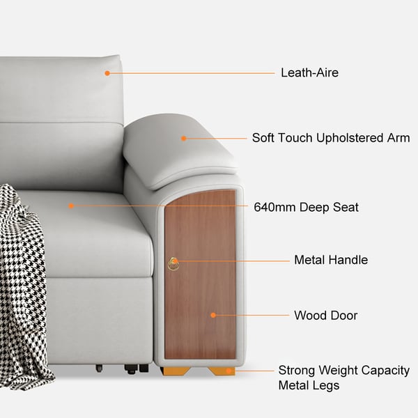 Comfortable cushion back and armrests are designed and modern to suit any decor theme. Its length and chaise longue are enough for three people to rest on it, perfect for living rooms. Leath-are upholstery and seating padding with high density foam adds maximum comfort for you when lounging after a long day. Come with a steel frame and metal legs, this sofa delivers sturdy support and durable performance and can hold up to 441 lbs. This is a stretchable sofa, it can easily become a bed, the bottom board can also be used as a coffee table.