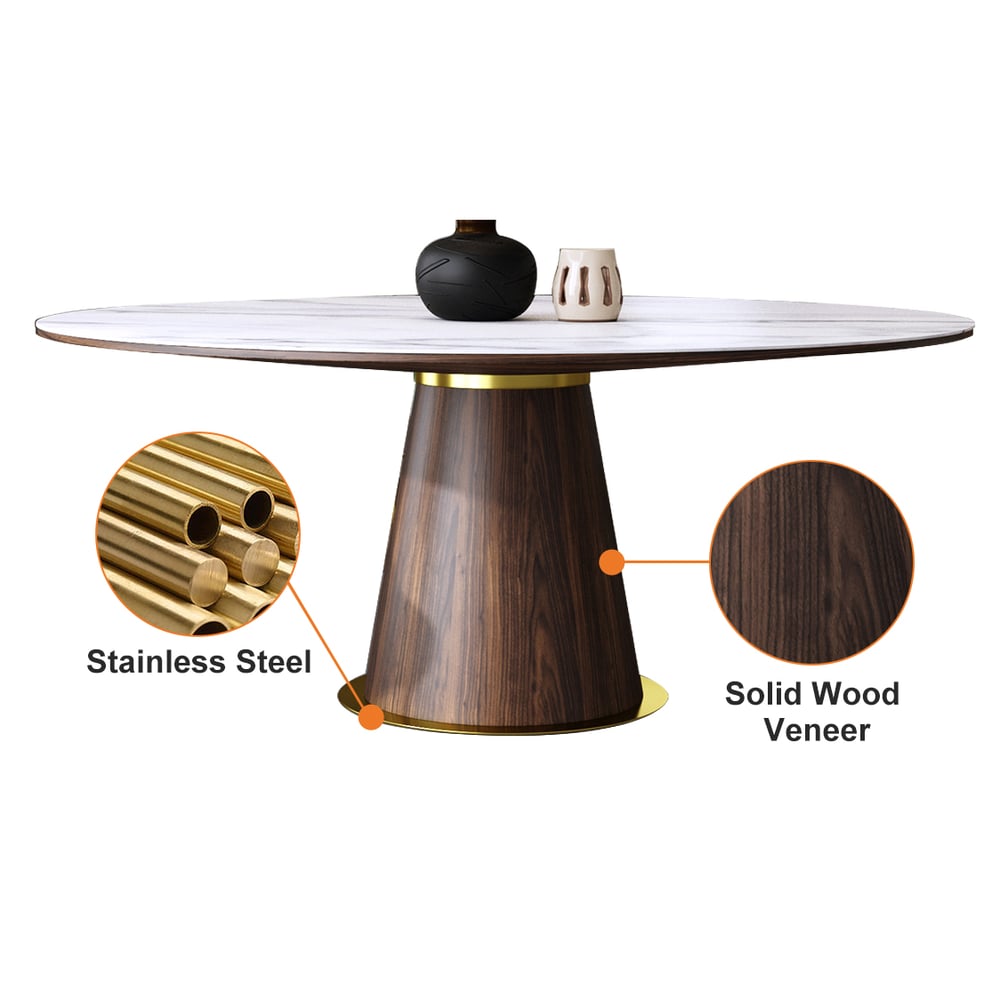 Add modern mid-century appeal to your dining area with this 7-piece dining room set. Featuring a marble veneered stone tabletop with an artistic texture, this dining table will showcase sophisticated natural aesthetics and add an elegant touch to any space. It includes 6 chairs that is padded with high-density foam to keep you comfortable while dining with friends. Comes from durable stainless steel and quality solid wood veneer, it allows long-lasting service. Perfect for hosting everything from a cozy dinner date to family meals.