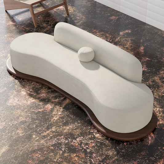 110" Modern White Velvet 5 Seaters Curved Sofa with Low Back Wooden Base
