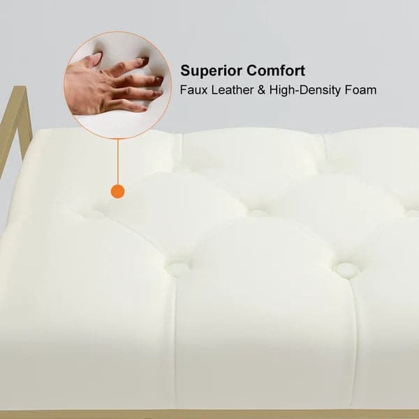 These days, entrance benches are handy and suit a diversity of ornamental demands. Both of its adaptability and style mark our imitation leather seat, and it provides charm and flair to your home. This modern channel-tufted bench is guaranteed to attract the attention of any guest. The distinctive bed-shaped seat top is beautifully complemented by its matte metal cage framed base, which boosts its durability, stability, and strength, enabling it to fend for years to come.Â
