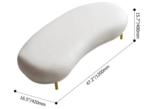 Modern White Velvet Bench Upholstered Curved Bench for End of Bed with Metal Legs