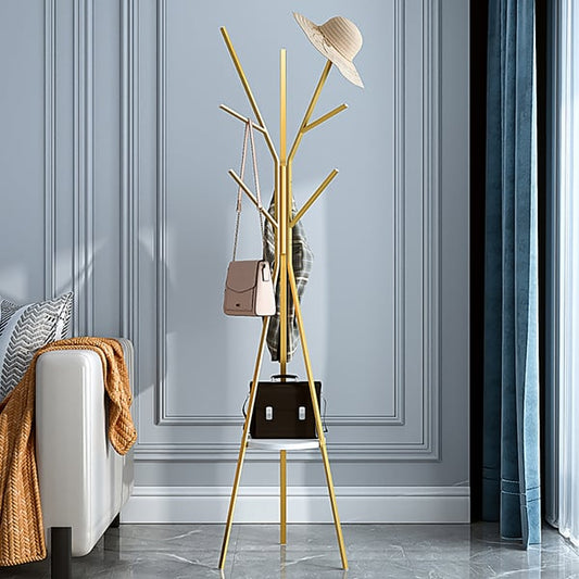 70.9" Gold Modern Freestanding Coat Rack Hanging with Shelf Marble Base