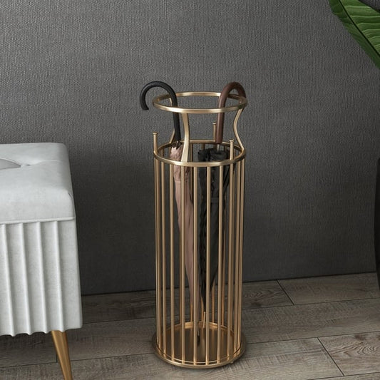 8.7"Dia Chic Golden "Marble Pillar" Style Umbrella Stand in Metal