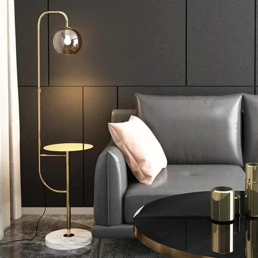 Minimalist Tray Table Floor Lamp Gold Standing Lamp with Metal Base & Glass Shade