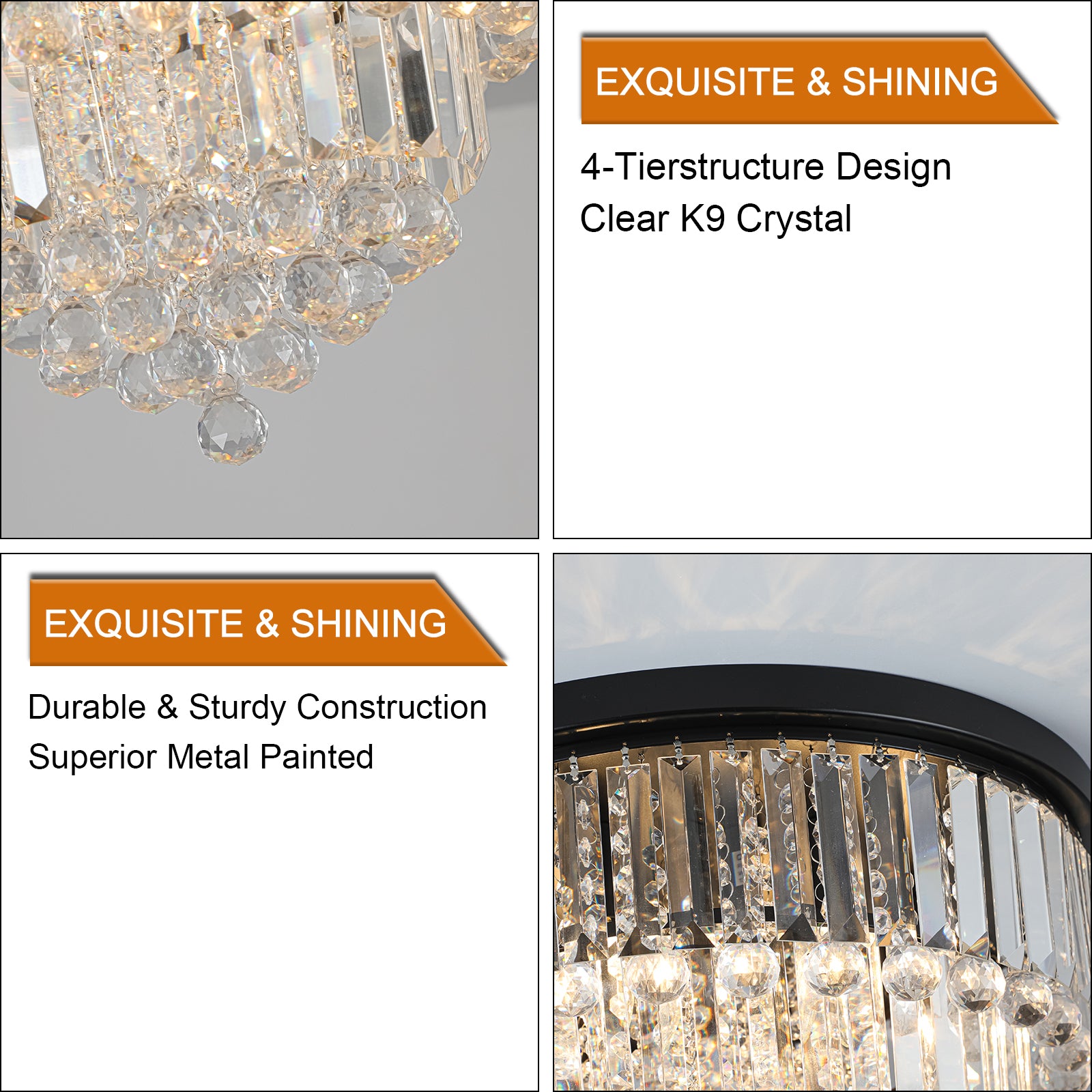 - Elegant and classic design -The crystal chandelier comes with a high-quality metal frame and K9 top-notch crystal.