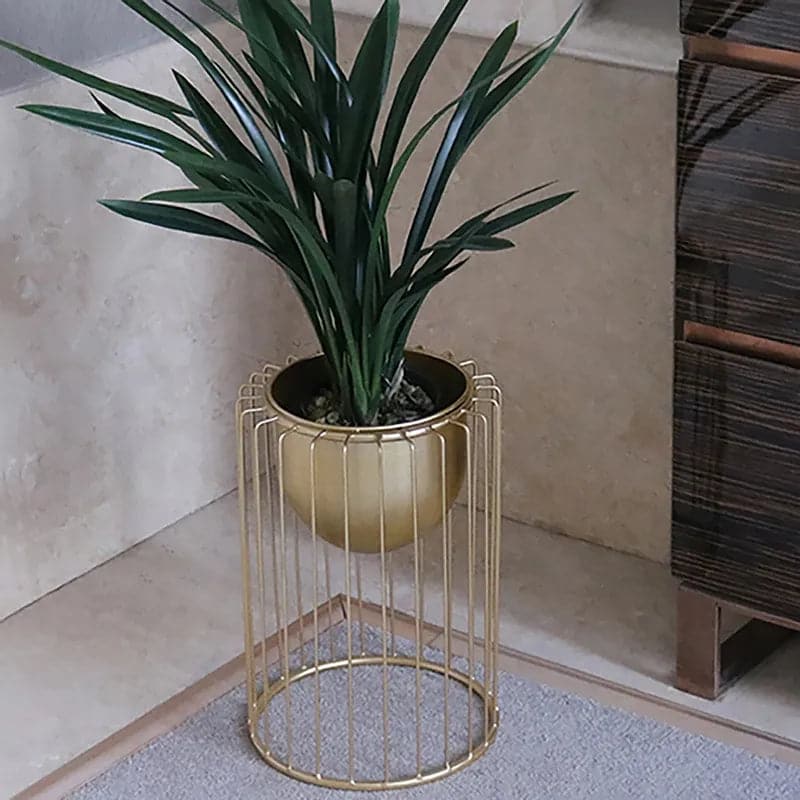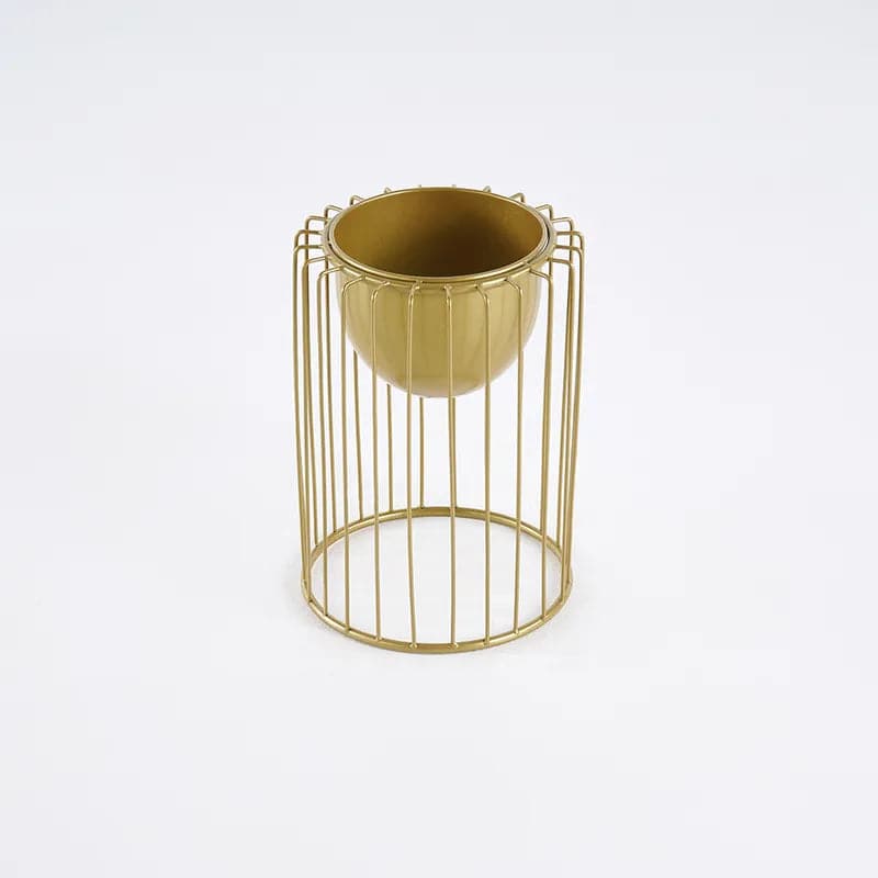 Create a contemporary indoor botanical display with this plant stand! Crafted of metal in a gold finish, each stand features an open rectangular frame and an inverted dome plant bowl. The metal construction ensures the steady support and yet beautiful look. All in all, it is excellent for holding your decorations to the stand. Just add this as a centerpiece to any living space and take in all of the compliments you'll get!