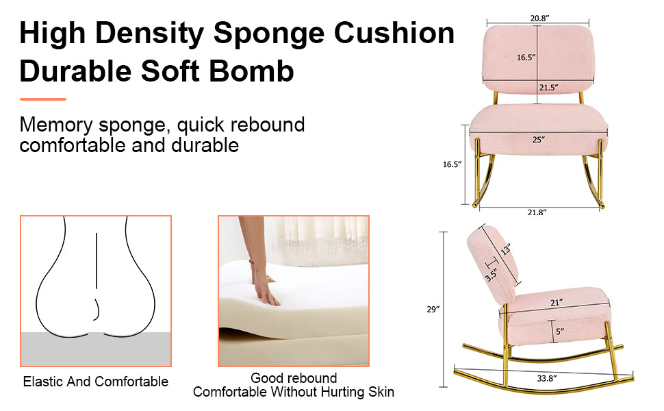 Comfortable Teddy Velvet Rocking Chair with Pink Backrest & Golden Metal Legs