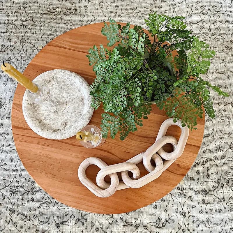 Comprise impeccable design of round silhouette with great function, this minimalist coffee table is a perfect solution to modern or vintage home. Showcasing a great piece of artistry, this round-shape coffee table features a smooth tray top that can be used for serving and displaying various decorative items. Made up of durable solid wood, and preservative metal, this table carries strong stability in a rich finish to create a stunning, sleek look. Add a bold touch to your living space with this eye-catching coffee table.