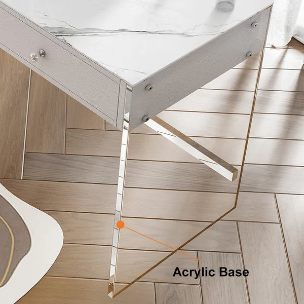 Get ready in style with this acrylic makeup vanity. Features 2 pull-out drawers that slide effortlessly along sustainable glides, allowing you easy access to your makeup and accessories, while the lighting vanity mirror that allows rotating 360°, ensures you'll be ready for your close-up at any angle. Complete with a vanity stool upholstered in the same design, this vanity is the perfect place to primp and prep for the day ahead!