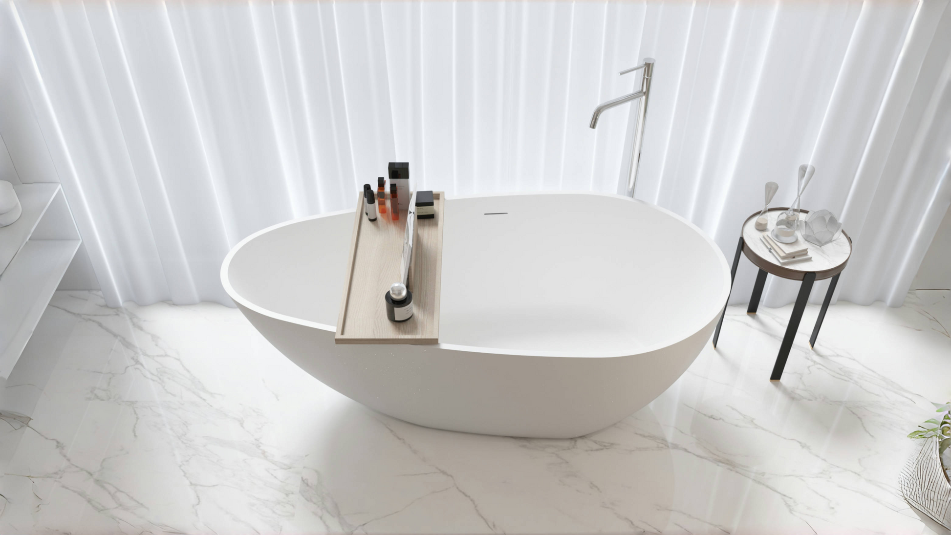 • Effortless Maintenance & Hygiene: This polished man-made stone bathtub is engineered to resist stains and minimize maintenance and won't crack, flake, detach, or turn yellow over time. The non-porous, antibacterial surface simplifies cleaning and can be repaired by sanding paper to even out scratches and obtain an absolutely smooth finish.