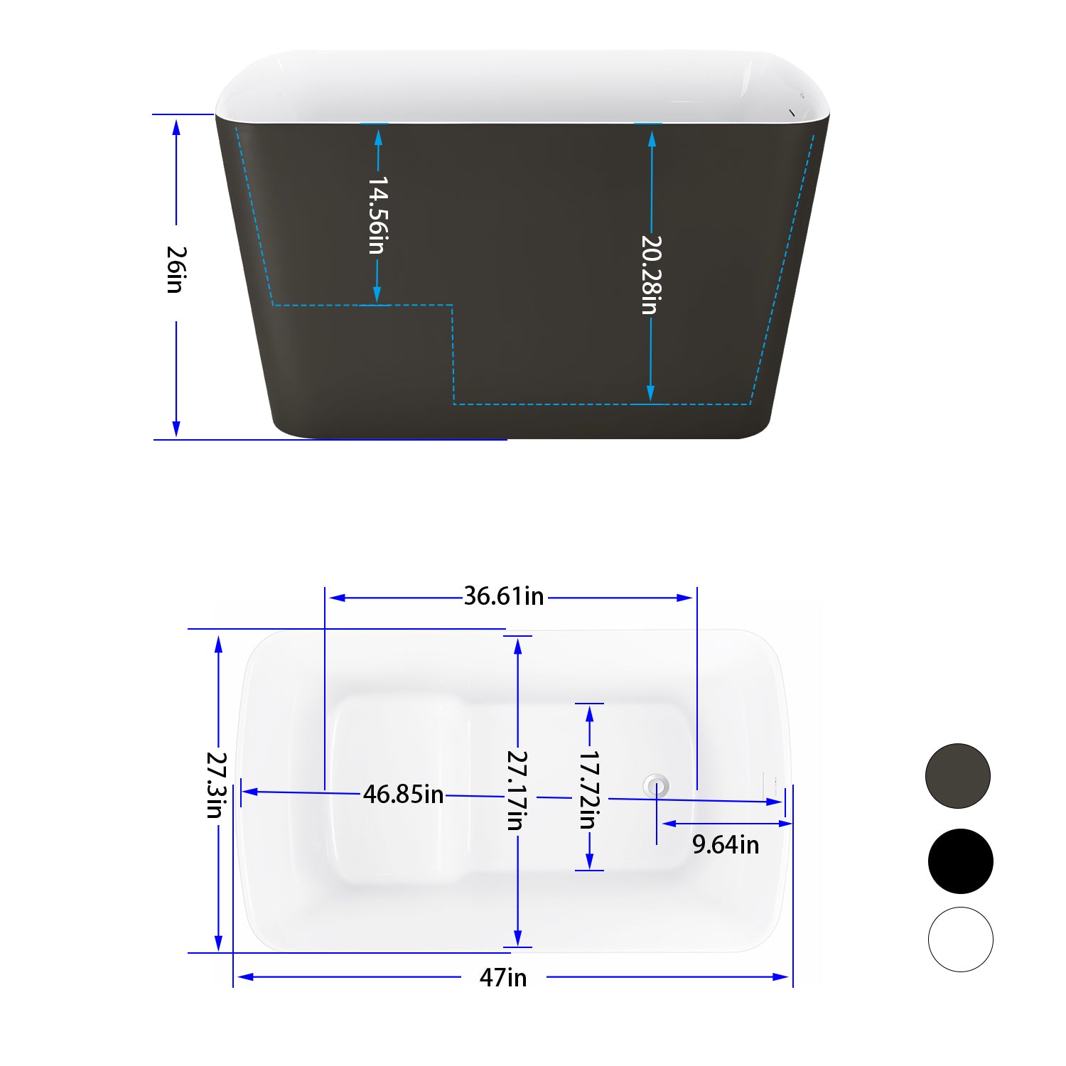 Luxury 47" Freestanding Acrylic Bathtub – White Interior with Gray Exterior, Perfect for Contemporary Spaces