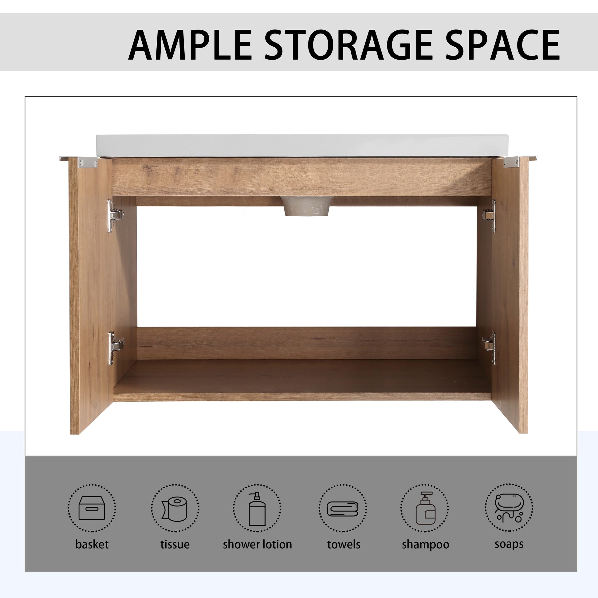 - [Floating Bathroom Vanity]The floating design makes the product more simple and generous. The space at the bottom can be more convenient for placing dirty clothes baskets and daily cleaning.