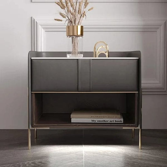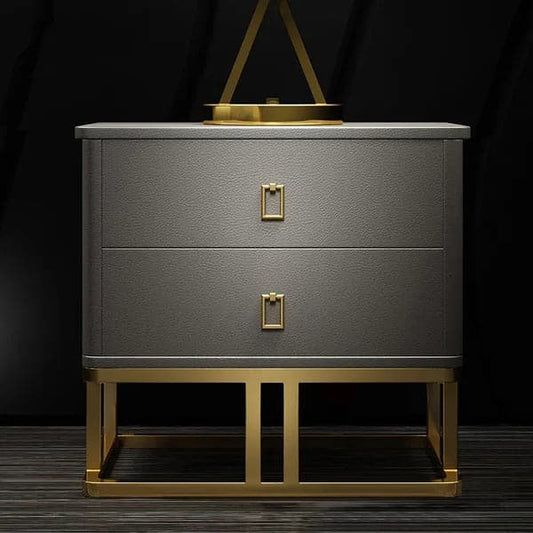 Modern Luxury Gray Nightstand 2-Drawer Bedside Table with Sintered Stone Top