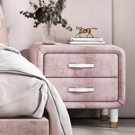 Modern Pink/Yellow Velvet Nightstand with 2 Drawers Bedroom